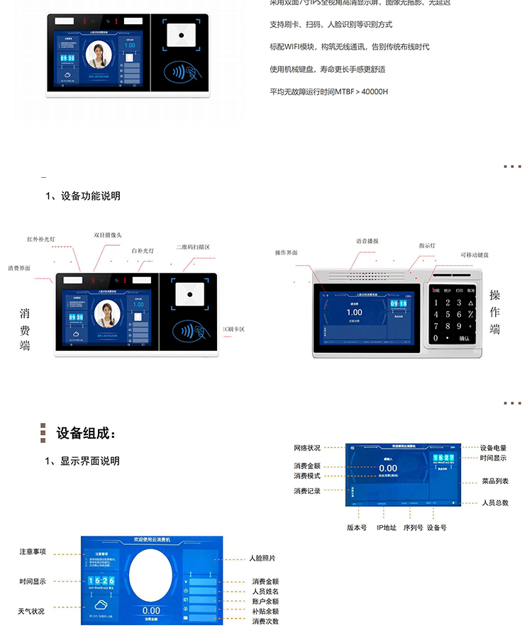 联众通-卧式消费机 MIA-LZT-S12(H12、Y12)人脸识别+刷卡+二维码+功能定制